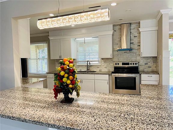 - Features: Breakfast Bar, Cabinets White, Stone Counters, View to Family Room