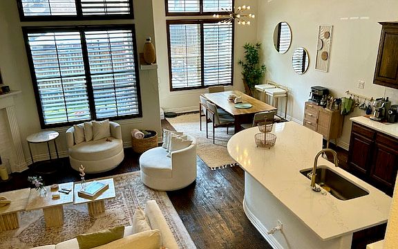 Private balconyFlexible office nookVaulted foyerHand-scraped hardwood floorsAbundant natural lightStainless steel appliancesQuartz countertops