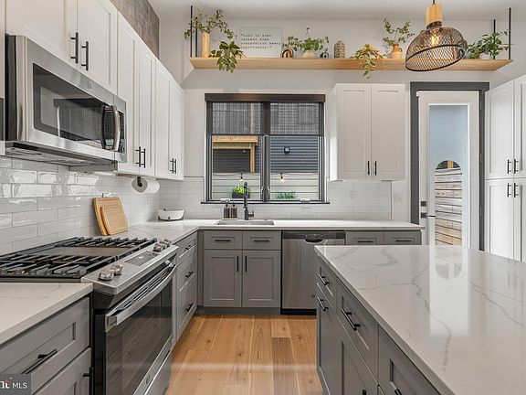 When opening the front door, only use the physical key from the lockbox and do not use the digital keypad. This 17-foot-wide luxury residence in the heart of Norris Square is unlike any other on the block, thoughtfully upgraded to create a truly one-of-a-kind home. Featuring 3 bedrooms, 3 full bathrooms, a finished basement, rear patio, and roof deck with Center City views, the home seamlessly blends modern design with custom artistry throughout. Inside, soaring 12-foot ceilings on the main level and 9–10-foot ceilings on all other floors create an airy, open feel, and every room has been enhanced with designer finishes and custom features. Highlights include hand-painted murals, custom wallpaper installations, storage built-ins throughout, upgraded lighting and hardware, and bespoke white oak shelving and beams in the kitchen that add both warmth and sophistication. The basement has been reimagined as a fully-equipped in-home gym, and both the roof deck and back patio have been transformed into stylish outdoor retreats. Every detail has been intentionally curated, ensuring both style and functionality at every turn. Adding to its value, the property comes with five years remaining on the tax abatement, providing significant savings for the new owner. Perfectly located just steps from Fishtown’s vibrant dining scene and local attractions, this home combines convenience with unmatched individuality. A comprehensive list of upgrades is available upon request to showcase the full scope of this home’s exceptional enhancements.