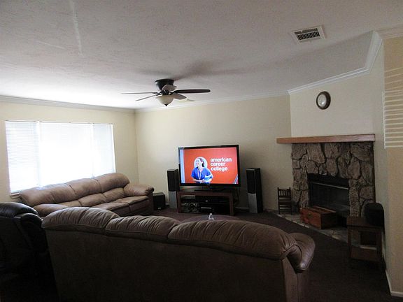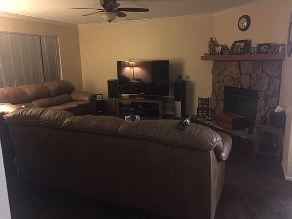 Great curb appeal!! Super clean 3 bedroom 2 bath home with an open floor plan. Textured ceilings with crown molding. Open kitchen with breakfast counter. Great corner fireplace in living room. Lots of cupboard space. Extra deep garage for your handy person. Completely fenced with a circular driveway. For extra storage, there are 3 storage sheds.Master control swamp cooler and central A/C. Great family home !!