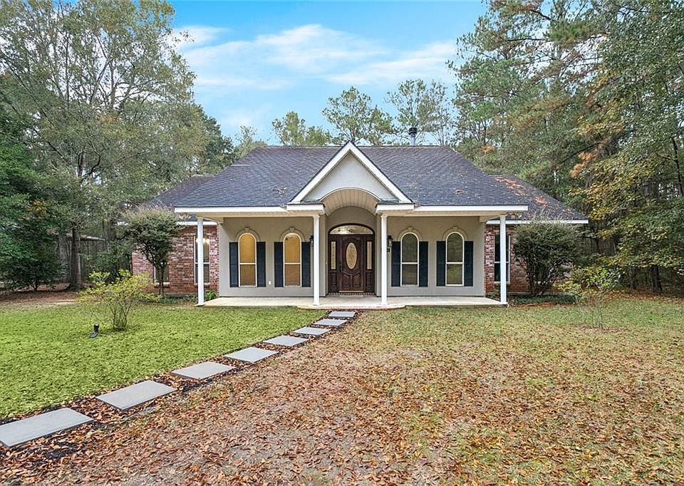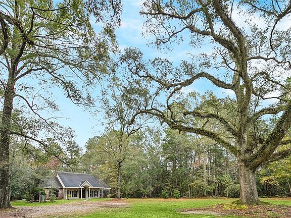 Space abounds in this STUNNING 2416sqft, 3bd/2.5bth Main Home on 8.61 acres, complete with an 825sqft, 2bd/1bth Guest Home! Nestled on a scenic lot with GORGEOUS Live Oaks and conveniently located just 10 mins to Downtown Covington and Downtown Abita Springs! Winding driveway offers tranquil views of the mostly cleared front yard with well-placed landscaping bushes for privacy from the road. HUGE covered front porch perfectly positioned for ultimate front yard viewing of this spectacular lot. Grand foyer entrance opens to spacious formal dining with arched entryway and expansive living room with feature gas fireplace, soaring ceilings and hardwood floors. Sizable kitchen offers endless granite counters for prep space, and ample cabinetry for storage. Newer refrigerator and dishwasher. Expansive primary suite with private sitting area, new carpet flooring, two HUGE walk-in closets, and large ensuite with oversized single vanity, deep soaking tub and walk-in shower. Large guest bedrooms with new carpets. Generous laundry room with storage closet and half bath. 10ft ceilings throughout. Fabulous covered back patio overlooking wooded rear yard. Raised guest home offers 2bd/1bth with full kitchen. Subfloors were recently redone in living room/kitchen. Guest home complete with wood deck and storage shed. Fabulous Carport/Pole Barn on a slab with RV hookup. Wooded border on all sides of the lot. Zoned for Abita Springs/Fontainebleau schools. Flood X - no flood insurance required. A MUST SEE! Make it yours today!