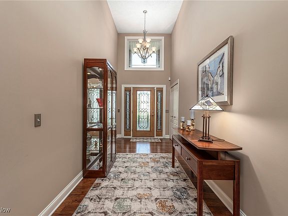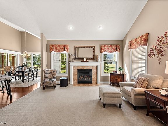 Step into timeless elegance in this thoughtfully designed ranch home, where upscale finishes and smart design combine for effortless living. All on one level, the home offers an open floor plan w/volume ceilings and sun-filled rooms that feel both welcoming and refined.From the leaded glass front door you’re greeted by a dramatic two-story foyer. The great room highlights a vaulted ceiling, gas fireplace and tall windows that fill the space with light while allowing flexible furniture placement. The kitchen is equally impressive with raised-panel cabinetry, granite counters, stainless steel appliances, double ovens, cooktop, French door refrigerator, under-cabinet lighting, and a breakfast bar that opens to a spacious dining area. Sliding doors lead to the screened porch with Trex framing, vinyl-sided walls and ceiling and Miracle Stone flooring. Step out to a stamped concrete patio with built-in gas grill. The backyard feels private with mature pines creating a natural buffer. Landscape uplighting casts a romantic glow across the trees.The primary suite features a volume ceiling, custom shades, and space for a king sized bedroom set. The primary bath offers solid-surface Corian with double sinks, a seated vanity, large step-in shower with glass doors, plus access to a generous walk-in closet. Two additional bedrooms complete the plan—one with a double-door closet and the other designed as a true bedroom with a walk-in closet yet offering versatility as a home office.The garage includes a protective floor coating backed by a transferable warranty, built-in cabinets, pull-down stairs to attic storage, hot and cold water and drain. A separate enclosed space was added for the furnace and hot water tank, keeping the garage neat and organized.Additional highlights include first-floor laundry with luxury vinyl plank flooring closet and utility tub. Professionally maintained landscaping and snow removal for a low-maintenance lifestyle.