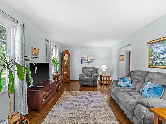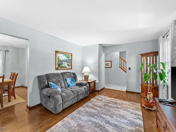 Welcome to this charming, well-maintained Strongsville colonial, nestled on a beautifully shaded lot. A paver sidewalk leads you to the inviting front entry, where you're welcomed into a spacious living room with hardwood floors that flows seamlessly into the heart of the home. The kitchen features rich wood cabinetry, leather-textured laminate countertops, and stainless steel appliances (2018), offering both function and style. Adjacent to the kitchen, the cozy family room offers a fireplace and access to the stamped concrete patio, creating the perfect setting for entertaining or relaxing in your peaceful backyard oasis. Upstairs, you’ll find 4 true bedrooms, each offering ample storage. A full bathroom completes this level, serving the entire second floor. The partially finished basement provides a versatile bonus space, perfect for a rec room, playroom, or home gym. Lovingly cared for by the same owners for over 45 years, this home includes significant updates such as a new roof (2025), Leaf Guards (2012), updated windows, regularly serviced HVAC, hot water tank (2014), and fresh paint throughout the first floor (2023). With timeless colonial charm and smart updates throughout, this home is move-in ready with opportunity to add your personal touch. Ideally located near parks, schools, shopping, and highway access. Don’t miss your chance to call this gem home!