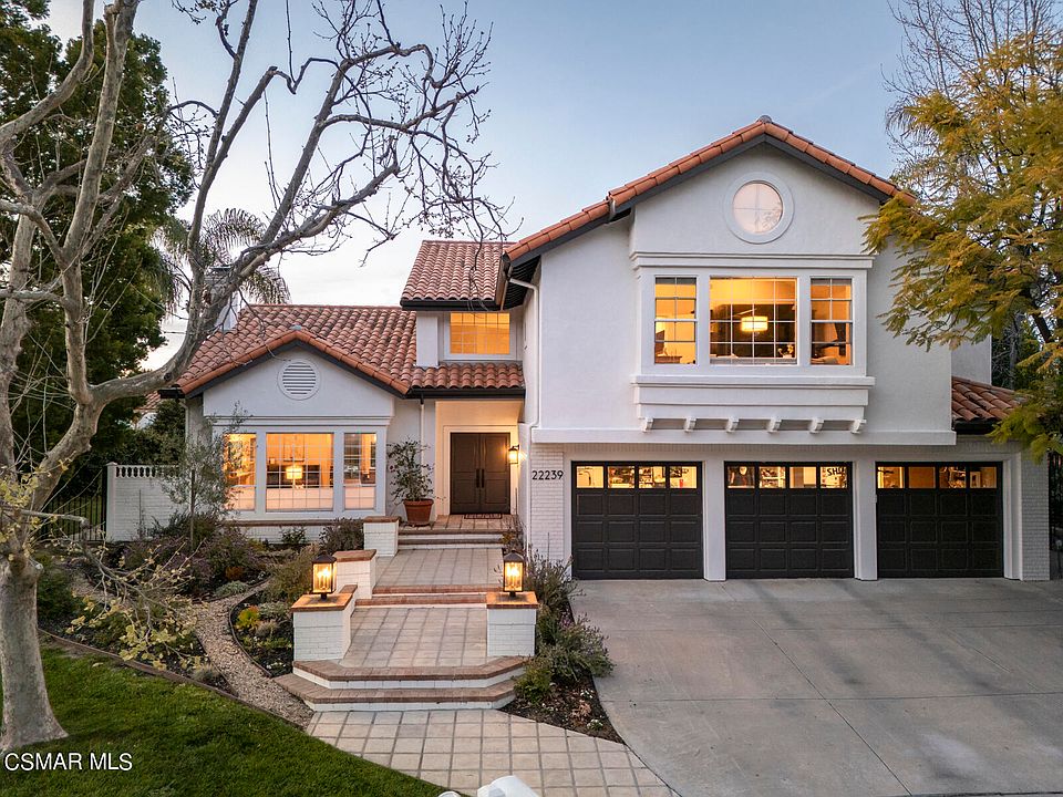 There are few things more captivating than watching a magnificent sunrise or majestic sunset, let alone from your personal, in ground spa. Welcome to 22239 Via Leonardo at the top of the hill in the one and only Mulholland Heights community of Calabasas. Located on the most desirable flat cul de sac and offering sensational mountain and city lights views, this 5 bedroom (4 plus bonus room), 4 .5 bath home is truly one of a kind. The crisp white painted masonry of the home, balances peacefully with the natural Zen-like landscaping. What a pleasure to come home to! Inside you'll find a stunning recently renovated home featuring white walls, wide plank 8'' light oak hardwood floors and Restoration Hardware lighting. The kitchen is masterfully laid out with a walk in pantry, skillfully installed custom shaker cabinets set against wonderful matte finish white quartz counters with a Carrera marble backsplash. The gourmet kitchen features the latest Thermador appliances while the stunning fireplace frames the great room so elegantly. The space is absolutely perfect. With the back of the home comprised mostly of windows, the jetliner views will make you stop and pause while gazing over the hills, homes and city lights of the north Valley. Lest you be concerned about the heavy lifting, worry no more because this home is not only beautiful, but it has a new roof, new dual zoned heat and air, water heater and garage door openers. The powder bath has been remodeled and while the others are largely original, they're clean and white and move in ready. Built by renowned home builder J.M. Peters, Mullholland Heights is one of the most sought after communities in all Calabasas. Nestled into the southern foothills of the Santa Monica range, this prized collection of homes features spacious properties, quiet streets and some spectacular views. The low homeowner dues include patrol services, brush clearance and an exclusive private park. Walk from your home around the corner to The Summit and Calabasas Peak trails where the hiking and views are something every nature enthusiast would love to have proximity to and you have just past your front door. Close to town, the studios and part of renowned Las Virgenes Unified, there is no place quite like Calabasas to call home.