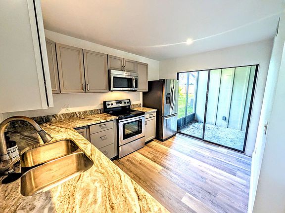 Annual UNfurnished Beautifully remodeled, ground floor, 2/2 condo is flooded with natural light from huge windows. This condo is an end unit so many more windows for sunshine to brighten your day. There is a new kitchen that is open to the dining area and living room for easy entertaining and family time. The kitchen itself has solid wooden cabinetry, topped with slab granite counters with breakfast bar, stainless steel appliances and large pantry. The master bedroom is spacious with a walk in closet and en suite bathroom. This unit also has it's own washer and dryer. The flooring is all solid surface so NO CARPETING! This condo is near the rear of the complex so it's very quiet there and near the heated pool, bicycle storage and out door grills. The location is superb-very close to the center of Sarasota, dining, shopping, opera, library, museums and Siesta Key or Lido Beach! Call now for a beautiful and convenient place to call HOME. NOTE: This community is governed by a homeowners association. Approval may include an application, background screening, fees, and an approval process. Contact the agent for details.