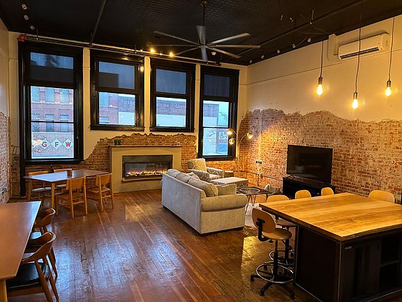 Beautiful (furnished) loft in Kearney's original Masonic Temple built in 1913. The loft was just restored with huge windows overlooking Central Ave. and a large skylight. Fourteen foot tin covered ceilings. Easy walking to restaurants, shopping, bars and The World Theatre. Public parking within a block of the loft. All new appliances.