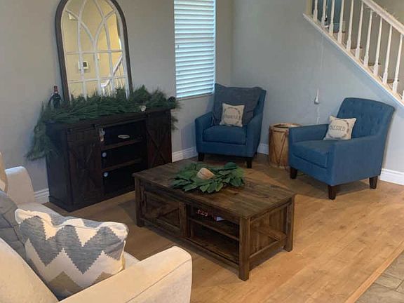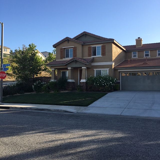 This property is located in the desire Anaverde neighborhood in West Palmdale. This is a 4 bedroom, 2.5 bathroom home with a large kitchen that is open to the big, bright family room and fireplace. The kitchen includes all built-in stainless-steel appliances, a big center island, large pantry, and access to the backyard and patio through the sliding doors. This home also features a large master suite with separate bathtub and shower, walk-in closet, separate water closet, double vanity, and window shutters throughout. The front entrance features a hardwood formal dining room and hardwood living room with white shutters for privacy. All remaining bedrooms are spacious with mirrored closets and carpet. The second full bath is located upstairs and features a double vanity. The downstairs has custom tile floors in the kitchen, entryway, laundry room, and half bath. Other features: Family room cabled for surround sound, 3-car garage.