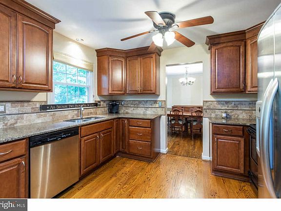 Welcome home to this beautiful 4 bedroom, 2.5 bath colonial located in North Wilmington's highly desirable Lancashire community. Upon entering you will immediately notice the beautiful hardwood floors, accent wall molding and neutral paint colors. The spacious living room boasts plenty of natural light through the large front windows. Hardwood floors continue into the dining room which has plenty of space for hosting dinner parties or holidays. You will look forward to cooking in the renovated eat-in kitchen with its cherry cabinets, granite counter tops and stainless-steel appliances. This space is perfect for entertaining friends as its open concept flows right into the family room with its brick, wood burning fireplace and recessed lighting. Head out the family room back door and onto your large deck and tree lined back yard where you can enjoy cookouts and cool fall evenings. Also, just off the family room you will find the first-floor laundry room with brand new washer and dryer, laundry sink and overhead storage cabinets, as well as entry to the garage and first floor powder room. The hardwood floors continue throughout the second floor. The four large bedrooms will certainly provide enough space and the fully renovated hall bath boasts a double sink vanity and tiled floor and shower. The master bedroom is also complete with its own ensuite bathroom. The partially finished basement provides even more space to enjoy with solid wood wainscoting and a build in wet-bar. This location is tough to beat - within one block of Lancashire Elementary School, tennis & basketball courts, and county parkland and close to shopping, dining and major highways for a fast commute anywhere. This will not last long so schedule your tour today!
