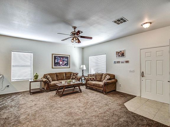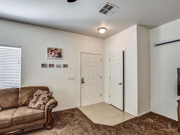 The driveway is 20' long & can fit a big truck! Lovely single level home with 3 bedrooms in a gated community -close to the mountains! Large great room has a coat closet & plenty of space for your furniture . Kitchen features a breakfast bar, plant shelf, pantry & all appliances are included. The dining area is over sized and has easy access to the back yard. There is a covered patio in the back yard & room for entertaining around the fire place or relaxing in the sun. The laundry area is in the hall for your convenience. The home also has a front security door, window blinds and ceiling fans!Make sure to view the community pool, playground, sport court and clubhouse area at front by Bowman. Make an offer on this home today!