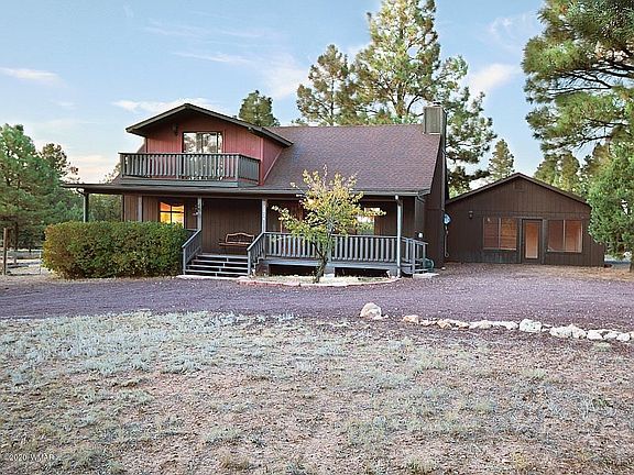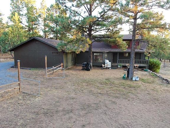 The Photos tell the whole story - Newly remodeled 4 bedroom, 2 bath cabin in Overgaard AZ sits privately on .93 acres with fenced backyard, detached 2-car garage or Workshop. Great garden plot, covered decks front & back. Lots of parking. Good balance of wood & drywall on ceilings and walls for rustic cabin feel with natural light. 2 furnaces / separate climate control zones - shut down one side of the house if not in use. Pride of ownership is evident. There's a greenbelt to West of home that will never be built on for added buffer between cabins. In the event of multiple offers the highest and best will be selected. All around amazing cabin. This one will go super fast.