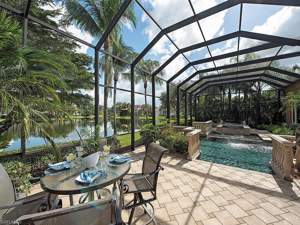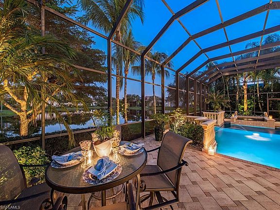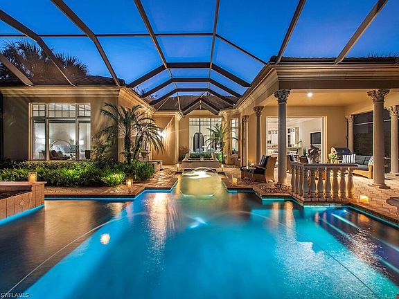 Spectacular lake views with expansive lanai to relax and entertain, with lap and reflection pools and fountains on a premiere lot. This winter, you can work, play, and relax in your own oasis, as this house has it all. Enter into this residence with soaring ceilings, tall windows that let in the sunshine, quality finishes of stone flooring, generous moldings throughout, Lutron system, a wine room to showcase your favorites, and a chef's, open concept kitchen with custom cabinetry, Viking appliances and a large, walk-in pantry. The main rooms and Master Suite have incredible views, both garages (3 cars) are climate-controlled, plus this home has a generator. Sip your coffee out on the lanai, while your guests frolic in the pool, and take in the private, peaceful views. This is life...it's time to reward yourself. Truly, this is the perfect home to make memories with family and friends! This residence is located in the award-winning Grey Oaks, with incredible resort-style pool, restaurant and bar, tennis center, bocce, three golf courses, and incomparable 30,000 sq. ft. Wellness Center. Grey Oaks is minutes from beach, shopping, restaurants. You've just found your home!