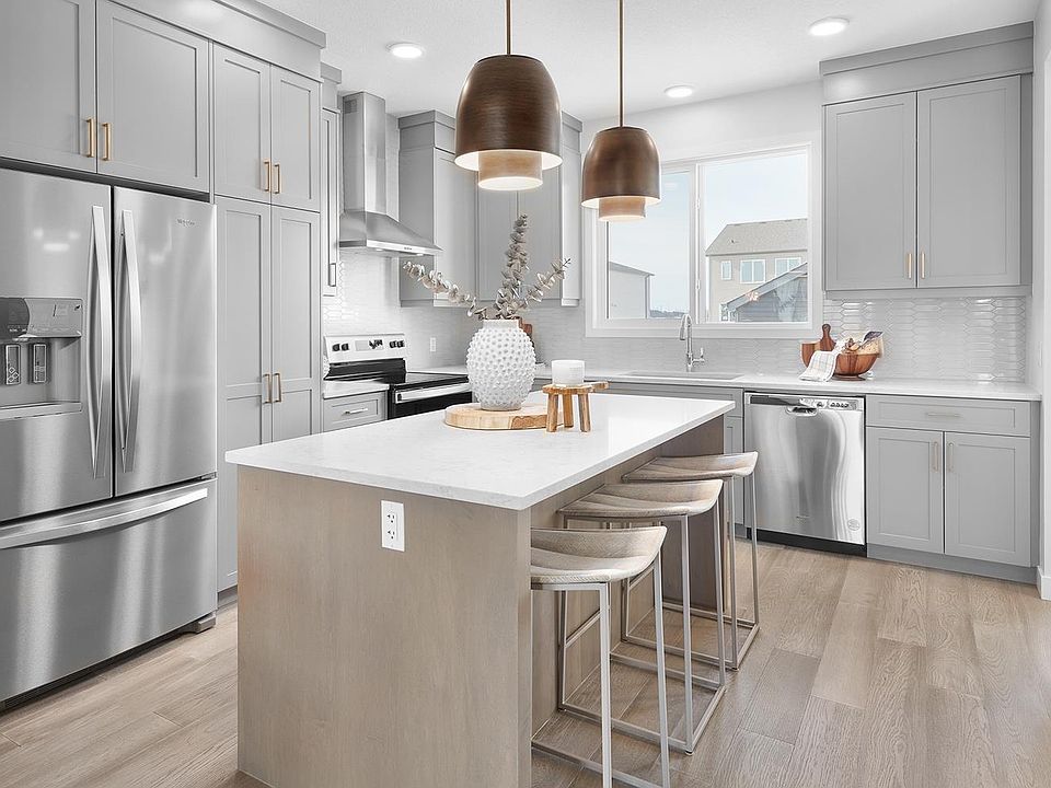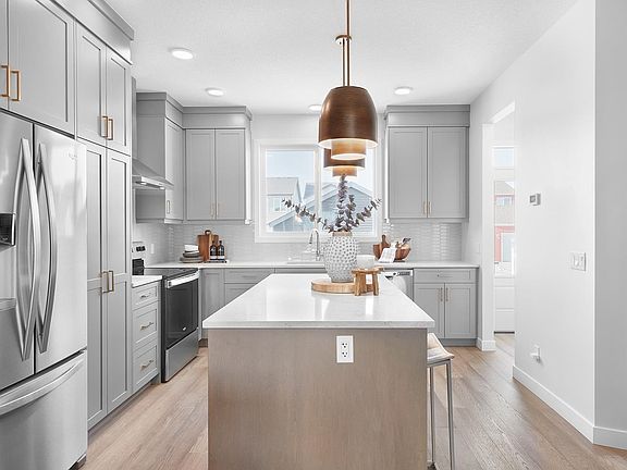 *1-Bedroom Basement Suite*This stunning home combines modern design with thoughtful functionality. A beautiful rear kitchen on the main floor with large great room featuring an Electric Fireplace. The chef-inspired kitchen includes built-in appliances, such as a gas cooktop. The uppder floor features 3 large bedrooms and the main bath boasts a convenient standing shower. The home also features a fully finished 1-bedroom legal suite, perfect for added income or extended family living. Located within walking distance to schools, parks, and trails, this home offers the perfect blend of comfort and convenience. The Orchards is a vibrant, family-friendly community in southeast Edmonton, this home provides access to an abundance of parks, ponds, and walking trails. Residents also enjoy exclusive access to a private 8-acre clubhouse featuring amenities for all ages, including a spray park, NHL-sized skating rink, playgrounds, tennis and basketball courts, and so much more. *pictures are not of actual home*