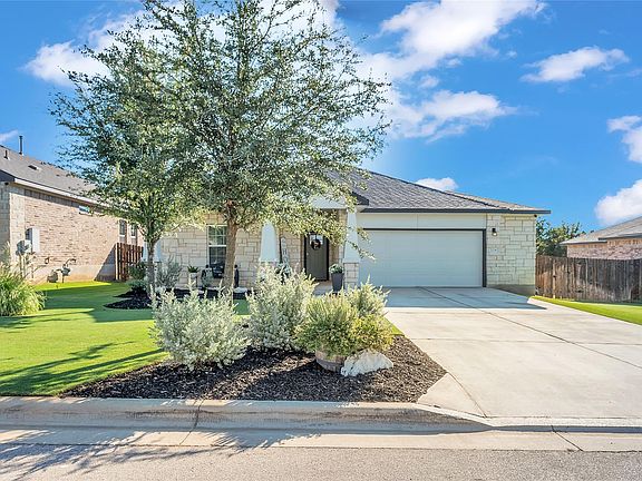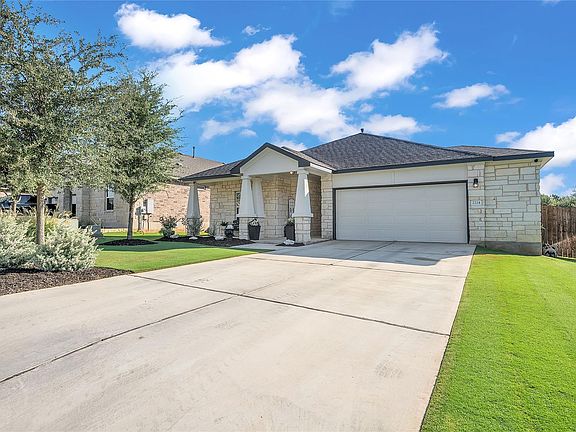 Welcome to Lively Ranch, where peaceful Hill Country views meet modern design and top-rated Liberty Hill schools! This beautifully maintained 4-bedroom, 2-bath home offers over 2,000 square feet of thoughtfully designed living space, combining comfort, style, and convenience in one perfect package. Step inside to discover luxury wood tile flooring, an open-concept layout filled with natural light, and a chef-inspired kitchen featuring granite countertops, stainless steel appliances, a spacious island, and a walk-in pantry. The primary suite offers a relaxing retreat with a spa-like bath, dual vanities, and a large walk-in closet. Enjoy evenings on the covered patio overlooking a private backyard—perfect for BBQs, pets, or simply watching the Texas sunsets. The 2.5-car garage offers extra space for storage, hobbies, or your golf cart! Residents of Lively Ranch enjoy resort-style amenities, including a pool, fitness center, community trails, and gathering pavilion. Conveniently located just minutes from 183, shopping, dining, and Lake Georgetown, this home provides easy access to everything you need while remaining tucked away in a peaceful community.