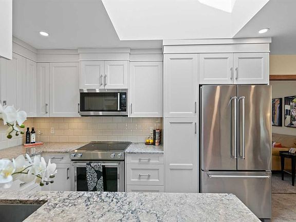 Renovated kitchenNatural lightCustom built-insWood-burning fireplaceQuartz countersPremium appliancesHeated floors