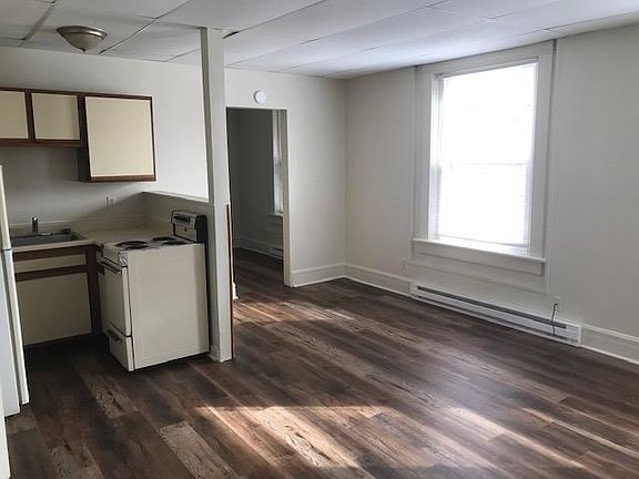 This is a second floor one bedroom one bath apartment in a 13 unit apartment building. It has all new flooring. It also has updated windows. It is an open floor plan. The bedroom is on the smaller side, so this unit is ideal for one person, two people maximum. We provide an apartment size stove and refrigerator. The bathroom has a stand up shower only, no tub. The apartment has electric baseboard heat. The tenant provides there own window air conditioner. This is a quiet building. There is off street parking for one car. There is a coin laundry room on the first floor. Rent includes the water, sewer and trash. Tenant pays for electric and cable TV or internet through Spectrum. No satellite dishes. Minimum requirements are $1,950/mo take home pay, clean background check, Absolutely NO EVICTIONS, at least 6 months on the job and rental references are a plus. NO Pets allowed. No smoking of any kind inside the apartment or building. Tenant supplies their own window AC in summer months. One year lease and then it turns into a month to month.