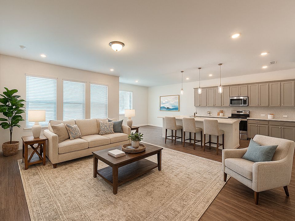 Upgraded carpetStainless steel appliancesAbundance of natural lightSleek quartz countertopsWalk-in closetsGenerous covered patioLarge island