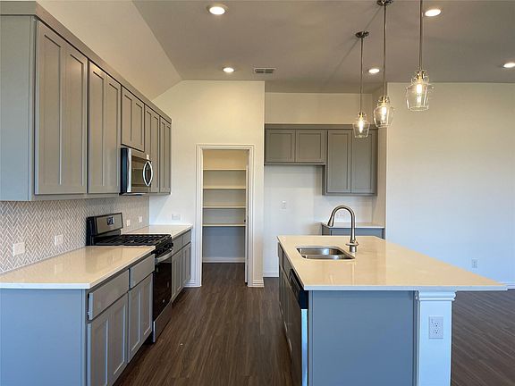 Welcome to this stunning and spacious 4-bedroom, 3-bath home with a flexible open layout designed for modern living. Enjoy the abundance of natural light throughout, with a flex room perfect for a play area, second living, or home office. The 4th bedroom easily doubles as a study for those working from home. All bedrooms feature walk-in closets, with upgraded carpet for added comfort, while the common areas are finished with elegant luxury vinyl plank flooring. The kitchen boasts sleek quartz countertops, stainless steel appliances, and a large island perfect for entertaining. Step outside to a generous covered patio and a backyard ideal for relaxing or hosting guests. Located in a family-friendly community offering resort-style amenities, including a pool, clubhouse, playground, dog park, walking trails, and more. Just minutes from Highways 75 and 121, highly-rated Melissa ISD. Walking distance to elementary school.