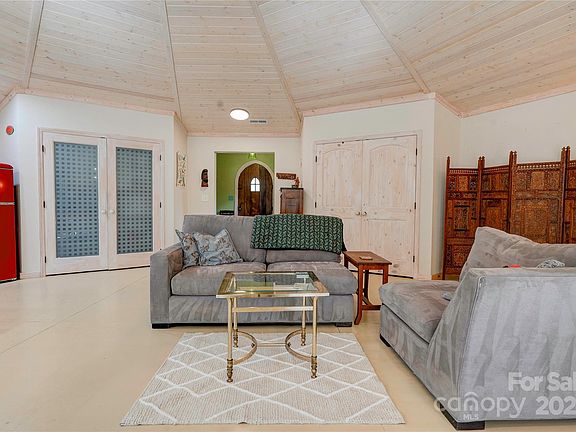 This unique custom Deltec home is nestled on 11.76 acres surrounded by mature woods and landscaping. Open floor plan with a vaulted ceiling in the main living area with a ton of great lighting from large windows. The outside of the home boast beautiful cedar plank siding as well as covered and uncovered porches. Eco-friendly features include solar panels, a hybrid hot water heater, and insulated Marvin windows. All appliances and Coleman Saluspa hot tub remain. Spacious outdoor building with electricity remains. This home is truly one of a kind!