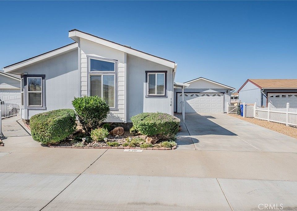 Welcome to Vista Del Rosa! This highly desirable 55+ gated community in Apple Valley is the perfect place to call home. Step inside this beautifully cared-for 3-bedroom, 2-bath home and feel the warmth right away. With vaulted ceilings, abundant natural light, wood-look flooring, and cozy carpeted bedrooms, the layout is both spacious and welcoming. The living room opens seamlessly to a formal dining area and a bright kitchen—complete with a center island, generous cabinetry, and a cheerful breakfast nook. A separate inside laundry room adds daily convenience and direct access to the garage. Your primary suite is a true retreat, featuring dual sinks, a soaking tub for relaxation, and a step-in shower. Two additional bedrooms offer flexible space for guests, hobbies, or an office with beautiful French doors. Outdoors, enjoy peaceful afternoons on your covered patio, surrounded by low-maintenance landscaping. The backyard includes a storage shed for extra space, and the extra-deep 20x22 two-car garage and ramp access make life even easier. Living in Vista Del Rosa means more than just a home—it’s a lifestyle! Residents enjoy a welcoming clubhouse, sparkling pool and spa, billiards, BBQ area, and a calendar full of fun community activities. Plus, you’ll be close to shopping, dining, medical facilities, and commuter routes for everyday convenience. Don’t miss the chance to make #118 your new home in one of Apple Valley’s finest and most inviting senior communities! Call now to schedule a tour today!!