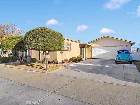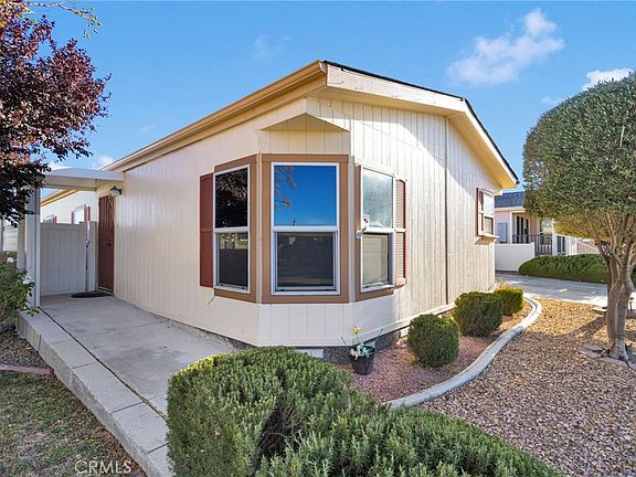 Welcome to your next home in beautiful Apple Valley’s desirable 55+ community, Vista Del Rosa! Built in 2004, this spacious 3-bedroom, 2-bath manufactured home offers comfort, convenience, and thoughtful upgrades throughout. Enjoy a modern kitchen with stainless steel appliances—including a refrigerator, stove, dishwasher, and microwave—plus a washer, dryer, and second refrigerator all included in the sale. Relax in your Jacuzzi spa or unwind on the aluminum back porch and front patio surrounded by irrigated, manicured landscaping, a dog run, and a vinyl fence with block wall for added privacy. The home also features a rain gutter system, swamp cooler, flood light for security, and locked gates for peace of mind. A detached storage shed with electricity and a wind turbine vent provides extra space for tools or hobbies. This property blends low-maintenance living with all the comforts you deserve—perfect for those looking to enjoy the best of senior community living in Apple Valley! Vista Del Rosa is a gated community with wonderful amenities, including a clubhouse, pool, spa, billiards, and BBQ area. Ideally located near shopping, dining, medical facilities, and the Apple Valley Senior Center with plenty of activities, this home offers the perfect blend of comfort, convenience, and community.