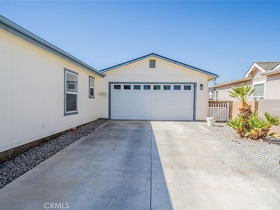 Welcome home to this beautifully maintained Champion Southwood manufactured home, nestled in the heart of the highly desirable Vista Del Rosa Senior Community. This welcoming 55+ gated neighborhood offers the perfect blend of comfort, security, and community living. Step inside and feel instantly at ease in this spacious 3-bedroom, 2-bathroom home, thoughtfully designed for both relaxation and functionality. The open living and dining area feature warm wood laminate flooring, creating a cozy yet elegant space to unwind or entertain. The bedrooms continue this charming touch, while the bathrooms, laundry room, and front entryway showcase stylish tile wood-look flooring—both beautiful and easy to maintain. Blinds on every window provide just the right amount of natural light and privacy. You'll love the walk-in showers in both bathrooms, offering convenience and comfort. The newer roof adds peace of mind, ensuring many years of worry-free living. Outside, the low-maintenance rock landscaping in both the front and back yards means less work and more time to enjoy life. The covered patio is the perfect spot for morning coffee or evening relaxation, surrounded by a block wall and vinyl privacy fencing—a lovely, private retreat. There's also plenty of space for a personal garden, where you can grow your favorite flowers or vegetables. This home also features an attached two-car garage with an ample driveway, offering plenty of parking for you and your guests. Beyond your doorstep, Vista Del Rosa offers an active and friendly community with wonderful amenities, including a sparkling pool, heated spa, dog park, picnic areas, billiard room, and a recreation center with a full kitchen—perfect for gatherings with neighbors and friends. With an on-site manager and professional maintenance, this community is always very welcoming. This is more than just a house—it’s a place to call home, where neighbors become friends and every day feels a little more special. Affordable, comfortable senior living at its finest. Call today for a private showing! It's time to make your move!! More photos coming soon!!