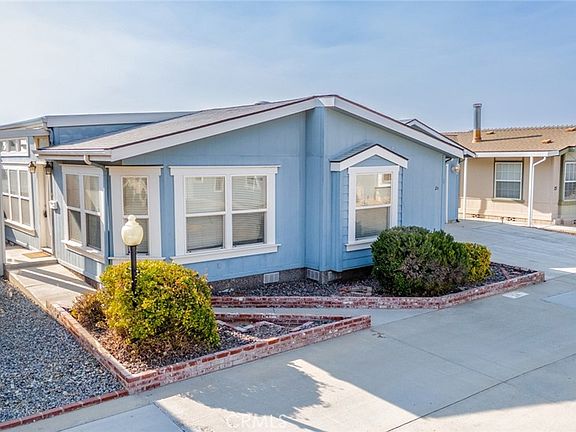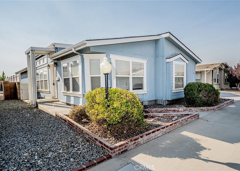 WELCOME HOME TO VISTA DEL ROSA PARK WHERE YOU WILL FIND SUPERB SENIOR LIVING!! THIS FABULOUS 2004 CHAMPION MANUFACTURED HOME IS A SPACIOUS THREE BEDROOM, TWO BATH WITH 1591 SQ FT OF LIVING SPACE!! THE SIDE ENTRY HAS A COVERED PORCH OVERHEAD AND A BEAUTIFUL DOOR WITH OVAL GLASS. WHEN YOU ENTER THE HOME YOU WILL FALL IN LOVE WITH THE OPEN LIVING ROOM SPACE AND SEPARATE DINING AREA WITH IT'S BEAUTIFUL CHANDALIER LIGHTING. THE ISLAND KITCHEN HAS OAK CABINETS, A LARGE PANTRY AND A LOVELY DESK AREA. STAINLESS STEEL APPLIANCES INCLUDE THE STOVE, MICROWAVE, DISHWASHER AND OPTIONAL REFRIGERATOR. THERE IS A BREAKFAST AREA IN THE KITCHEN TOO! THE LAUNDRY ROOM OFFERS MORE CABINET SPACE WITH A COUNTERTOP FOR EASY FOLDING AND SORTING OF CLOTHING AND AN EXIT DOOR FOR DIRECT ACCESS TO THE TWO CAR GARAGE AND PRIVATE DRIVEWAY. FRENCH DOORS GIVE YOU ENTRANCE TO A BEDROOM THAT COULD ALSO BE USED AS A HOME OFFICE. THE HALL BATH IS A TUB/SHOWER COMBO. THE PRIMARY BEDROOM HAS A FULL WALL OF CLOSET SPACE WITH TWO DOORS FOR EASY ACCESS. THE PRIMARY BATHROOM HAS A JACUZZI GARDEN TUB, AN EASY STEP-IN SHOWER AND SEPARATE SINK COUNTERS WITH WOOD LOOK FLOORING. THE BACKYARD HAS A COVERED PATIO WITH A CONCRETE PAD AND LOTS OF SPACE FOR GARDENING AND ENTERTAINING FRIENDS AND FAMILY. VISTA DEL ROSA IS A GATED COMMUNITY WITH ONSITE MANAGEMENT AND LOTS OF PARK AMENITIES SUCH AS A DOG PARK, POOL, SPA, TENNIS COURTS, BILLIARD ROOMS, CRAFT ROOM, BANQUET ROOM WITH A FULL KITCHEN FOR SPECIAL GATHERINGS OR MEETINGS; AND PLENTY OF PLANNED SOCIAL ACTIVITIES FOR RESIDENTS TO ENJOY AND MAKE NEW FRIENDS. CLOSE TO SHOPPING AND A VERY ACTIVE SENIORS CENTER JUST MINUTES AWAY. THIS HOME IS A MUST SEE AND READY AND WAITING FOR YOU TO MOVE IN!! CALL TODAY TO SCHEDULE A TOUR!!!