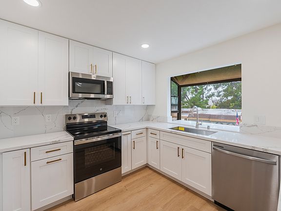 This meticulously updated home showcases luxury vinyl plank flooring throughout and an abundance of natural light. The second level offers an open-concept living area with modern recessed lighting and a completely redesigned gourmet kitchen. Kitchen highlights include elegant quartz countertops and backsplash, soft-close cabinetry, new stainless steel appliances, and an oversized farmhouse sink. Energy-efficient dual-pane windows enhance comfort throughout. The spacious primary suite features generous closet space and an elegantly remodeled ensuite bathroom with a luxurious walk-in shower and frameless glass enclosure. Two additional bedrooms offer recessed lighting and dual-pane windows. The updated secondary bathroom and convenient hallway laundry complete the upper level. Additional features include a 2-car attached garage with extended driveway parking, ample guest parking nearby, and access to resort-style amenities: fitness center, tennis courts, volleyball court, and scenic walking trails with breathtaking Irvine Spectrum views. Ideally situated in Laguna Hills with quick freeway access, premier shopping and dining destinations, beautiful beaches, and top-rated schools. This home is ready for you to move in!!