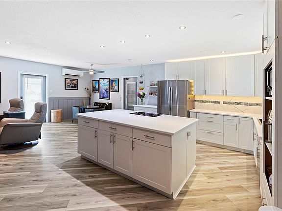 Center islandUpdated guest bathroomQuartz countertopsFlorida roomHeated spaVinyl flooringWalk-in shower