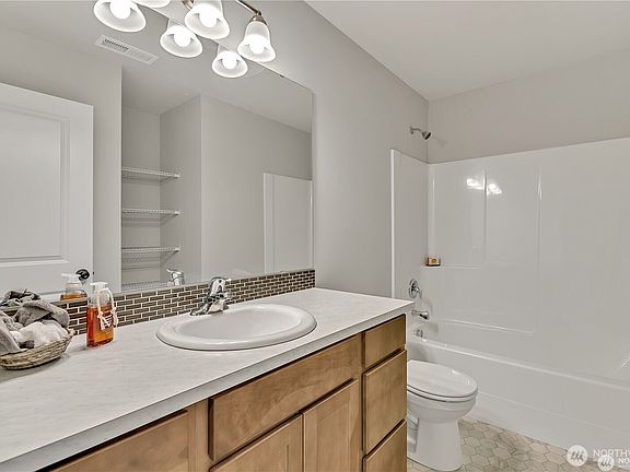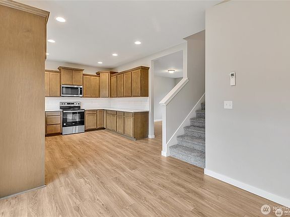 New Construction charming home in the gated community of Clearwood. This 2 story, 3 bedrooms, 2.5 bath 1,437 sqft, 2 car garage home features living and dinning room concept, open kitchen with stainless steel appliances, quartz countertops and laminate flooring throughout main floor. Propane fireplace in living room for those rainy PNW days. On upper level is the Primary bedroom with walk-in closet, 2 bedrooms with large bonus room and unity room. Neighborhood pool, 15+ miles of walking trails, sport courts, 3 lakes with numerous beaches, fishing and lots of playgrounds. Close to elementary school & fire department. A Must See! EST April 2025 2-10 Warranty Provided.