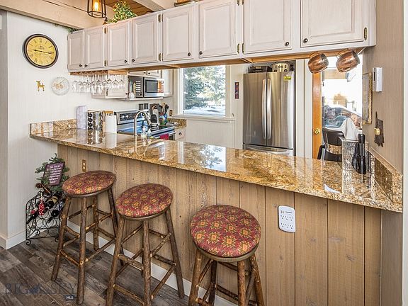 Fully renovated, wood beams, large skylight to bring in natural light and high ceilings in the upper level add mountain character to this 2 level Silverbow Condo. Sitting adjacent to the Big Sky Golf Course are the Silverbow Condominiums and just minutes from winter and summer activities. Grab your golf clubs and walk to The Bunker to play around of golf in the summer and then In the winter months the golf course becomes miles of cross country ski trails right from your front door. Enjoy the large deck off the kitchen with unobstructed views of the Middle Fork of the West Fork of the Gallatin river as well as the golf course. Silverbow owners have use of an indoor hot tub for the winter months and an outdoor swimming pool in the summer to enjoy after an adventurous day on the trails. This particular unit doesn't share walls with other units and is sold furnished.
