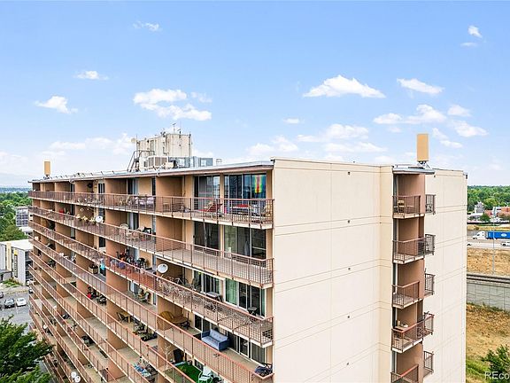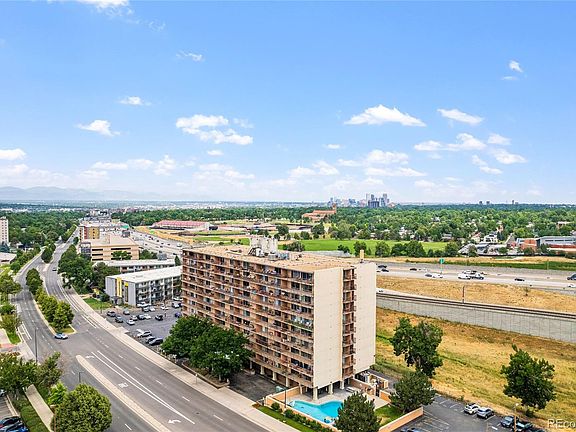 Experience elevated living in this 10th-floor residence situated within University Park Tower. This light-filled retreat overlooks the University of Denver campus and the western mountain range, providing a stunning backdrop of breathtaking views. Enter into an open layout flowing with light, neutral wall color. The kitchen offers ample storage with warm wood cabinetry. A spacious living area presents plenty of room for both relaxing and entertaining. Vast sliding glass doors open to an expansive outdoor balcony — the perfect setting to soak in captivating views of the city and mountains. Two sizable bedrooms with balcony access and generous closet space are complemented by two bathrooms. Building amenities include access to a swimming pool. Residents enjoy the convenience of two dedicated parking spaces, one in the garage and one assigned in the lot. A central location offers close proximity to the University of Denver campus, the light rail, restaurants, retail and entertainment.