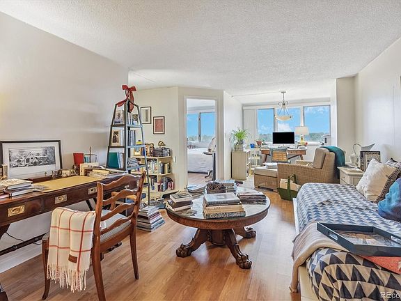 Location! Come see a charming updated 2 bedroom condo with expansive views and you can live in the most desirable area across the street from the University of Denver campus. One deeded parking space in the West lot is included. The high rise building offers a security entrance with large lobby where you can receive your secure packages and mail. Also on the first floor is the well appointed clubroom with WiFi and access to the gas grill, deck and pool. On the eight floor hallway there is an extra storage closet and a convenient laundry with trash chute. Enjoy an easy walk to the Light Rail station. Restaurants and public amenities at the DU Magness Center are just steps away. Don't miss this fantastic opportunity.