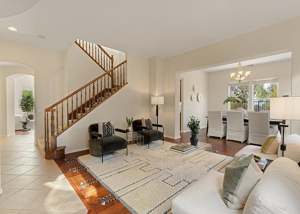 This exceptional and rare opportunity presents a solar-owned residence featuring five bedrooms, including a casita/office with a separate entrance, situated on a tranquil, premium lot adjacent to a gated private park and green belt that is seldom utilized. The home is designed for entertaining, offering multiple gathering areas on both levels. The first floor includes the casita/office, a bedroom, two living or family rooms, a spacious dining area, and a separate breakfast nook adjoining the expansive kitchen. The homeowners association maintains the open space. This prime location is just a mile to the Village and offers excellent walkability to the beach.