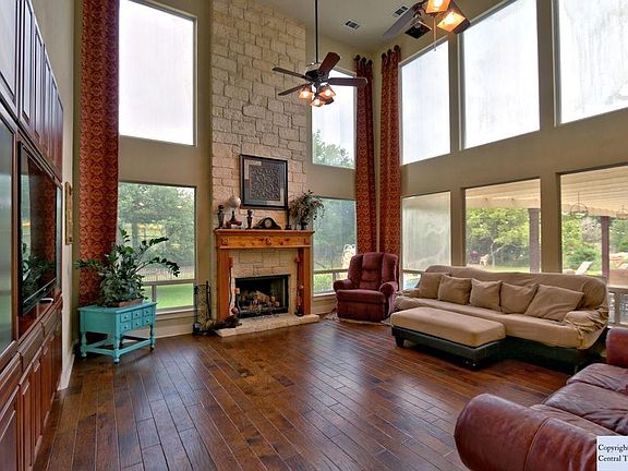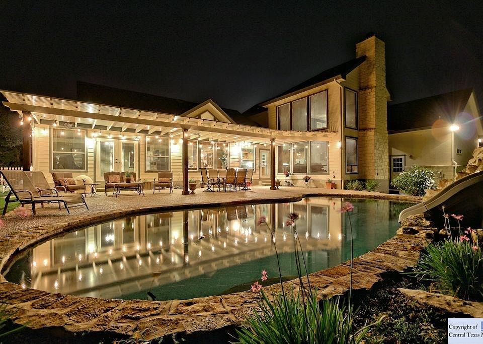 River Crossing Gem! Home is nestled on 1.5 acres overlooking a steady flowing creek. Spacious Home features 4 bedrooms, Master and Secondary bedroom is down. Chefs dream, 40 ft of counter space, extra large pantry. Huge windows bring plenty of Texas sunshine. Party Time at the pool and a spectacular private backyard, plenty of space for kiddos and pets. Large walk-in attic space. The TV in Living room conveys with the home. Community has a Golf Course,Club house, Pool, Gym that you can join. Smithson Valley schools and HEB and Walmart are close by.