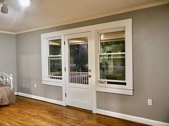 Mature treesSpacious roomsEat-in kitchenCustom window treatmentsStorage buildingCovered front porch