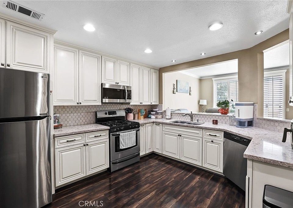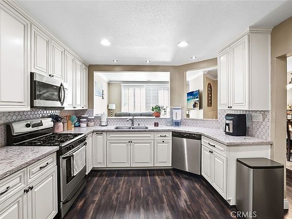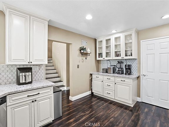 Welcome to this beautifully upgraded home in the highly desirable Laing’s First Edition community in Corona Hills. This spacious residence offers 3 bedrooms, 2.5 bathrooms, and an open-concept layout designed for modern living. Natural light pours into the living area through a skylight, creating a warm and inviting ambiance. The updated kitchen is a showstopper, featuring quartz countertops, custom cabinetry, a designer mosaic backsplash, and stainless steel appliances. A cozy breakfast bar flows seamlessly into the dining and living spaces, where you’ll find a charming fireplace, hardwood/tile flooring, crown molding, and ceiling fans that add comfort and style throughout. Enjoy indoor-outdoor living with shuttered sliding doors that open to a private front patio, plus a balcony off one of the bedrooms. The luxurious primary suite is your personal retreat, complete with a large walk-in closet and private en-suite bath. This sought-after community offers residents access to a sparkling pool and lush gardens, while a 2-car attached garage provides convenience and storage. Perfectly located, you’re just a short stroll to shopping, dining, movie theaters, parks, and hiking trails—with easy access to the 91 and 15 freeways. Low HOA and low taxes make this home an even greater value!