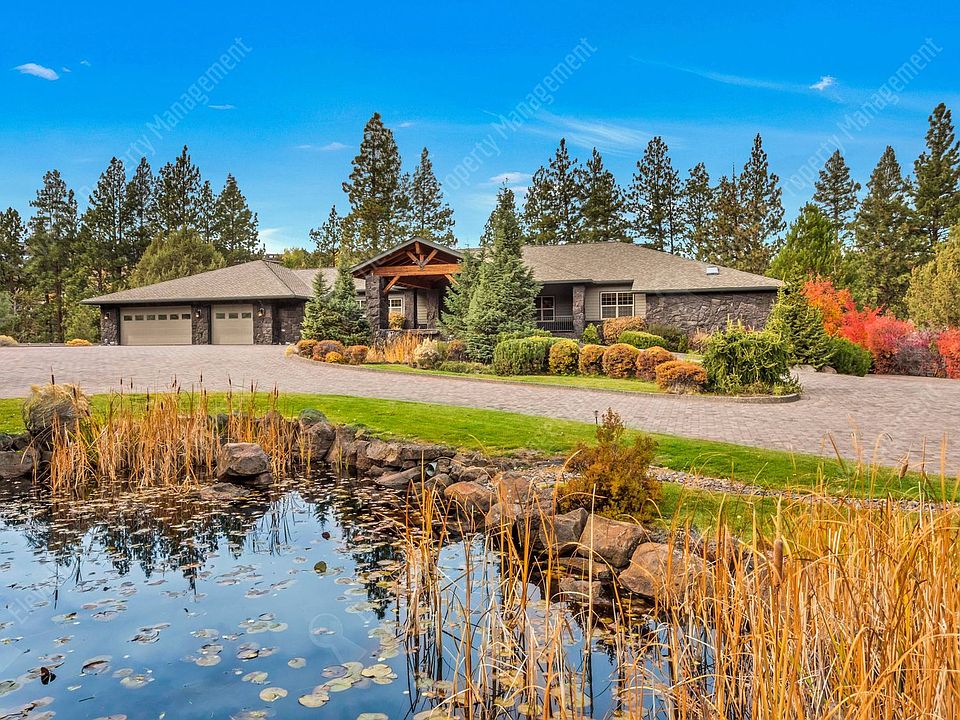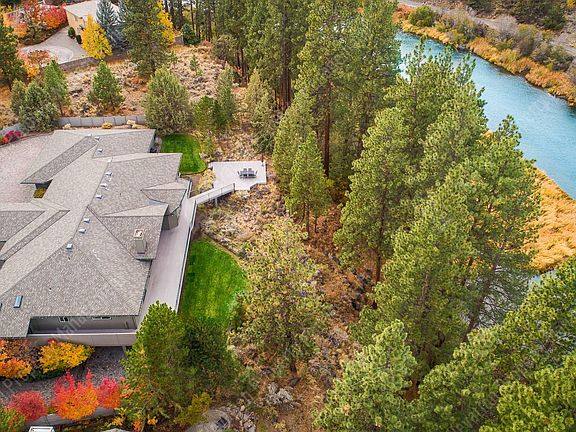 Welcome to this stunning 5 bedroom, 5.5 bathroom home with over 7,000 sf located in Bend, OR. This gated property offers a serene setting on the Deschutes River and is conveniently close to Downtown Bend. This property itself is truly spectacular and features towering ponderosa pines, a tranquil pond, gorgeous wildlife and expansive decks to enjoy the beautiful scenery and sunsets. A grand covered entrance leads you to a great room with towering tongue and groove cedar ceiling with a massive fireplace, perfect for chilly central Oregon winters. A wall of windows brings the outside right inside. The kitchen has quality all around with high-end stainless appliances including a 6 burner Dacor range, Sub-zero fridge and with two dishwashers, cleaning up after entertaining is a breeze! The kitchen also boasts a breakfast nook and there is a large formal dining room as well. The primary BR has more space than you'll ever need and includes a romantic corner fireplace and french doors leading to the deck. A home office ajoins the primary BR, a perfect space to work, read or just relax with a good book. The en suite bathroom has dual separate vanities, a spa tub and a shower you have to see to believe (it's huge!). There is another large BR upstairs with an en suite bath and another half bath for guests. Downstairs is almost as fantastic as upstairs! Walk into a large media room with a soda fountain and wet bar - perfect for hosting movie or game nights! There are also two additional BRs and another full bathroom. This home is the perfect blend of luxury and nature, offering a peaceful retreat in a prime location. This is a one-of-a-kind rental in Bend and has the space, quality and setting worthy of a luxury property!