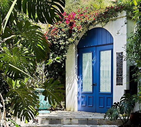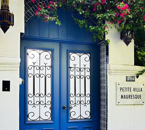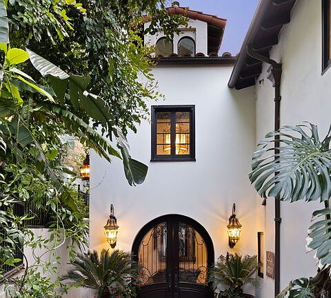 Welcome to Petite Villa Mauresque, a breathtaking retreat tucked into the verdant hillside of Hollywood's Outpost Estates at 2225 Malaga Road. This masterfully remodeled property blends Mediterranean architecture and Moroccan-inspired design with the highest standards of modern luxury, situated high above the vibrant city below. Enter through the Moroccan-inspired front door, framed in handcrafted zellige tiles and artisan light fixtures from Marrakech that lead to a serene landscaped courtyard adorned with bougainvillea, an array of lush planting, and a water fountain. Inside, the expansive living areas feature floor-to-ceiling windows, arched doorways, and open layouts that allow for an abundance of natural light to cascade through. The heart of the home is the living room that seamlessly flows into the gourmet kitchen featuring custom cabinetry, Carrera marble countertops, and state-of-the-art Miele and Thermador appliances, sure to delight the most discerning chef. The granite island offers a space for casual dining or entertaining with a built-in wine fridge. An adjacent media room with surround sound and an 800-bottle temperature-controlled wine cellar provide the ideal nook for movie nights. Dual primary suites feature private balconies, ensuite bathrooms, and gas fireplaces. The main suite has been renovated to include a seating area and spa-like bathroom with a steam shower, double vanities, a freestanding tub, Toto toilets, and custom closets designed by Linda Koopersmith. The backyard opens to an elegant stone patio encircling a pristine pool, bordered by blooming flowers, a charming outdoor fireplace, and an outdoor kitchen with BBQ that sets the stage for al fresco dining and memorable evenings under the stars. An elevated basketball court adds an element of playful recreation without leaving the comfort of the home. This estate provides unrivaled access to the best of the Hollywood Hills, known for its rich history as a celebrity hideaway. Residents enjoy the seclusion, natural beauty, and stunning views just minutes from iconic attractions such as the Hollywood Bowl, Runyon Canyon Park, and the legendary Hollywood Sign.