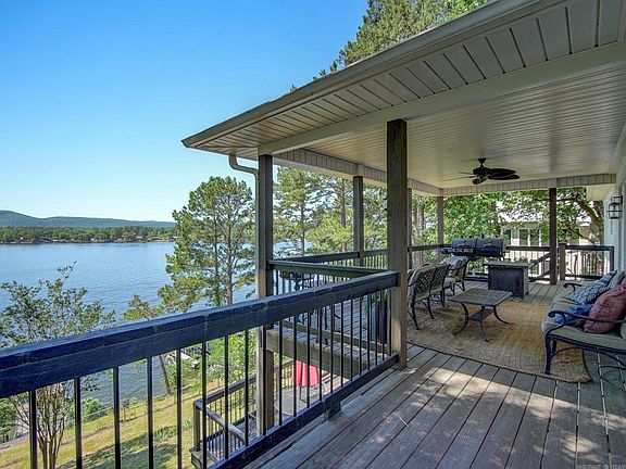 Charming 3 bedroom / 2.5 bathroom home with 112 ft of shoreline on Lake Hamilton. This house is more like the size of a large condo with your own yard, outdoor decks and 2 stall boat dock but with no POA dues. Enjoy the privacy of your own entrance and outdoor space. The two decks offer a lot of options for outdoor living/entertainment areas. This home had a nice update in 2022.There are upper and lower living areas both with bedrooms and ensuite bathrooms. The little bedroom downstairs is more like a bunk/bonus room. It currently serves as a bunk room for the grandkids. Also, upper and lower washer and dryer utility rooms. The kitchen, living, dining area lake views are mesmerizing. Look straight out across Lake Hamilton to Mt. Riante vista views. Easy living in this lake home for sure. New roof in 2024, new HWH and HVAC within last few years.