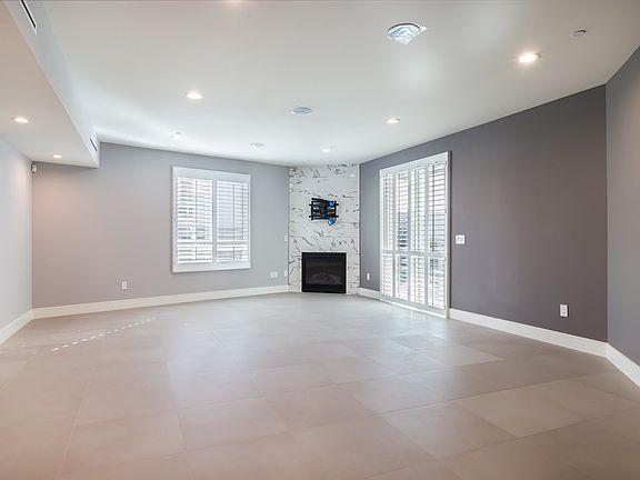 Inside a bright and spacious living room featuring a cozy fireplace, ideal for relaxing evenings or entertaining guests. Just off the living area, enjoy your own private patio, perfect for morning coffee or outdoor seating with friends.