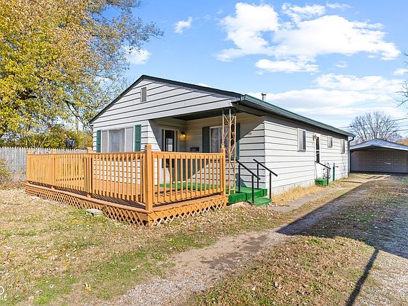 Welcome to this charming three-bedroom, one-bath home, perfectly situated on a peaceful, dead-end street, offering true cozy living from the moment you step into the generously sized family room. The spacious, eat-in kitchen provides ample space for dining and entertaining. Outdoors, you'll find a private oasis featuring a gorgeous wood deck ideal for relaxation. Featuring a gravel drive leading to the large fenced backyard. Practical amenities include a two-car detached garage with carport and 2 mini-barns that stay with the property, providing excellent storage. This beautiful home offers comfort, privacy, and convenience- a must-see!