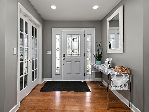Beautiful and meticulously maintained 2-story home in Prairie Chase Subdivision! This 3 bedroom, 3.5 bath home offers an open floor plan, finished basement, and thoughtful upgrades throughout. Off the foyer, French doors open to a versatile office with wainscoting-easily convertible to a 4th bedroom. The main level features bamboo flooring, a spacious mudroom with built-in bench, hooks, and storage compartments, and a half bath. The living room includes a gas fireplace and TV mount, and opens to the kitchen with custom Amish cabinetry, quartz countertops, stainless steel appliances, a walk-in pantry, island seating, and table space. Step outside to enjoy the fully fenced backyard with a large patio accented by pavers (2024) with a walkway to the heated above-ground pool (2019) with composite deck (2022) -perfect for entertaining or relaxing. Upstairs are three bedrooms and the laundry room. The primary suite offers a tray ceiling, walk-in closet, and a spacious private bath with double sinks, whirlpool tub, and separate shower. The other two bedrooms share a full bath. The finished basement adds a large family room, wet bar with mini fridge, gaming area and a full bath. For added peace of mind, the home includes a radon mitigation system and a sump pump with battery backup. This home has it all-style, space, and smart updates!