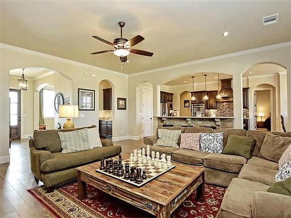 Stunning home in gated community at Fairways in Crystal Falls! Home sits on a private .45 acre large cul-de-sac lot. Enjoy hill country and Crystal Falls Golf Course views. Upgrades galore including; light fixtures, wood tile flooring and crown-molding throughout. Kitchen has granite countertops, large center island and a gas cooktop, 4 dining areas, plus a butler's pantry. Living area offers a stone floor-to-ceiling fireplace for enjoying cozy evenings. Spacious study with do... Entertainers dream home!