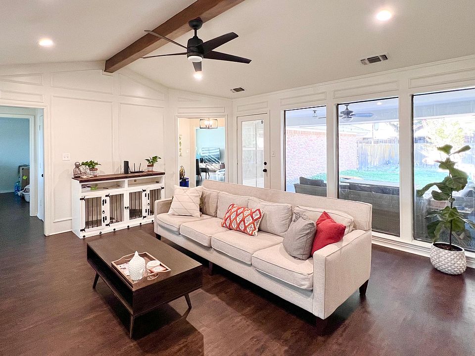 Location! Location! Location! President George Bush Highway, diverse restaurants, shopping centers, and groceries are just minutes away! Fully remodeled with brand new roof, 3 bedrooms, 2.5 baths with 2 living areas nestled in the beautiful neighborhood of Woodcreek. Decorated with stained wood beams and modern farmhouse lighting. The master suite is a place to enjoy the oversize standing shower, beautiful standing tub, his and her vanities, and closets. The kitchen features quartz countertops with an under-mount single Basin Stainless gold sink. The cozy living room features a fireplace, and one more living room with a wet bar for you to entertain your guests. The roomy backyard has a covered patio and a mature tree that is perfect for family relaxation. Brand new windows with Korean combo shades. Move in ready! Renters responsible for all utilities, no waterbed, no smoking, pet restriction, no sublease allowed at all. 50 dollars per application, applicant over 18. Deposit and first month of rent required upon signing lease. Kitchen Appliances, washer and dryer can be left behind with negotiation.