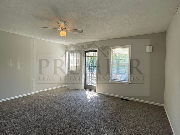 Big yardBackyard shed for storageFull hallway bathroomBonus roomCeiling fansCarpet floors