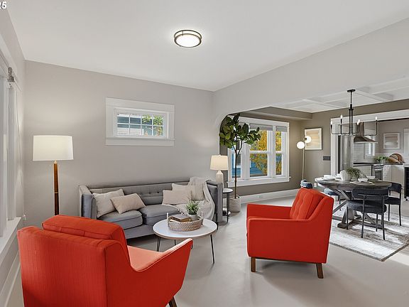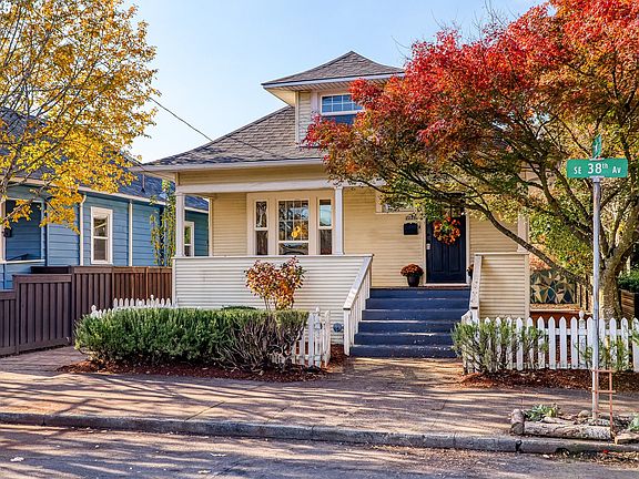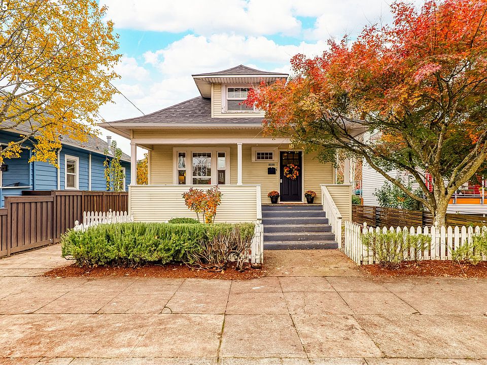 Home for the Holidays! This updated and inviting bungalow is just what you’ve been waiting for. A charming white picket fence frames the picturesque exterior, complete with a spacious front porch perfect for lazy summer evenings or a glass of wine with friends while soaking in the neighborhood sights. Inside, beautiful hardwood floors draw you into an open, light-filled floor plan that connects the living and dining spaces seamlessly. The kitchen is the heart of the home — fully updated with sleek quartz countertops, custom tile backsplash, stainless steel appliances, vent hood, and modern cabinets. Ample prep space and thoughtful design make it as functional as it is beautiful — ideal for hosting holiday dinners or quiet mornings with coffee and sunlight streaming through the windows. The upstairs bedroom features fresh carpet, cozy nooks, and a private attached bathroom for added comfort and convenience. The basement offers plenty of potential for additional living or entertaining space. The accessory structure, equipped with a bathroom and loft, provides a flexible opportunity for a creative studio, home office, or guest retreat.The spacious backyard is private and full of mature trees — ready for your personal finishing touches. Close to some of the best that SE Portland has to offer, including great food, local shops, and that unmistakable Portland vibe.