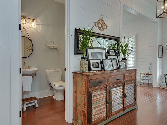 This gorgeous, custom-built home in desirable Rhodes Farm exudes southern charm! The rocking chair porch is perfect for enjoying your morning coffee. Inside, beautiful hardwood flooring, high-end finishes, and heavy millwork flow throughout. Formal living and dining off the foyer. Ahead, you'll find an open concept family room and bright, gourmet kitchen. The family room shows off a white-washed, brick fireplace while the kitchen boasts a large island, quartz counter tops, high-end stainless-steel appliances, touch-sensitive sink activation, walk-in pantry, and butler's pantry. Spacious main level master suite features his and hers vanities and tiled, walk-in shower. The upper level holds a loft, bonus room, three bedrooms, and two full bathrooms. The screened-in porch and large patio with firepit is a perfect spot to entertain or unwind! Neighborhood sidewalks, 2-acre park, covered pavilion, and 1 mile to the Savannah River!