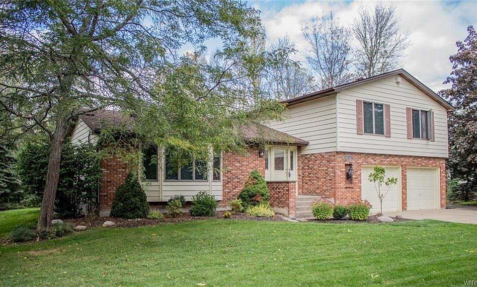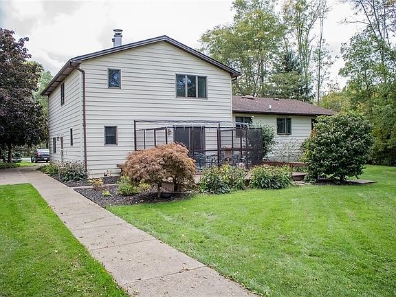Beautiful 4 bedroom, 2.5 bath brick/vinyl colonial with attached 2.5 car garage plus additional detached 1.5 car garage on private tree lined 2.9 acre lot. Updated kitchen features Brazilian cherry hardwood floors, plenty of wood cabinetry, appliances and eating area. Spacious living room with new carpet opens to formal dining room. Step down family room offers wood burning fireplace, sliding doors to enclosed patio with awning. Convenient 1st floor laundry with half bath. Upstairs: Master suite, 3 bedrooms with ample closet space. Full basement with 2 large finished rooms. Tear off roof 2011, HWT 2015, water back up sump pump, 4 zone heat, 2 zone ac. Park like yard with fruit trees, play set, additional garage with water and electric, extra parking pad perfect for RV or boat.