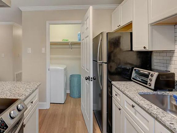 Fully furnished all utilities included corporate housing offered also on Airbnb, VRBO and QuantumSuites but on Zillow at a reduced monthly rate for long term renters. Renters for 90+ days to not pay occupancy tax. One month due to move in, security deposit can be held as credit card authorization. Located very close to RTP, Duke University/Hospital, UNC. Updated with modern kitchen, appliances, foam King and Queen mattress. Fast Gigabit AT&T fiber internet available through landlord or direct from AT&T. Smart TV in living room and master bedroom. Balcony off of bedroom. Very nice neighborhood. Pet friendly. Washer and dryer in unit. Space is quiet and very centrally located to downtown Durham, RTP, Duke University, Duke Hospital, UNC, NCCU