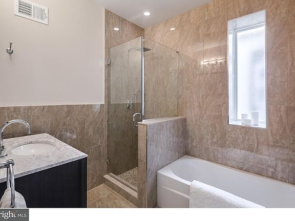 Tastefully rehabbed 3 bedrooms, 1.5 baths with finished basement. Lots of natural light through out. 1st floor - large living room with h/w floors, large front window with 1/2 bath. Separate dining room area. Lots of recessed lighting. Dining bar, custom kitchen with granite countertop, s/s appliance, subway tile backsplash. Door to good size yard. 2nd floor - Front bedroom - with 2 large windows, 2 closets, h/w floors, television nook between closets, c/f. Middle bedroom - c/f, h/w floors, closet. Back bedroom - h/w floors, 3 windows, good size closet, c/f. Hall bath - custom tiles, stand up shower plus a bathtub, large frosted window, recessed lighting, granite countertop for vanity. Basement - fully finished with a separate hvac room, gas hotwater, gas heat, central air and heat. Washer/ dryer area tiled flooring, 2 closets.